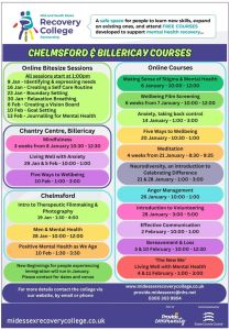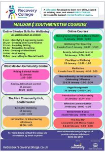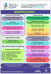 Mid and South Essex Recovery College is pleased to share its latest programme of free mental health and wellbeing courses running across Mid and South Essex throughout January and February.