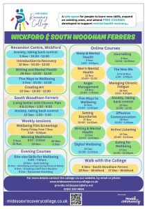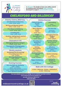 Find our more, and book your free place online by visitng: www.midessexrecoverycollege.co.uk