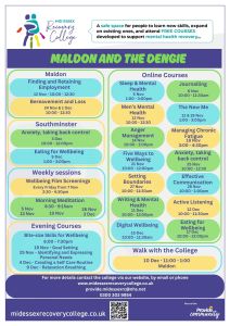 Mid Essex Recovery College is delighted to share its latest programme of free courses designed to support mental health and wellbeing across Mid and South Essex this November and December 2025.